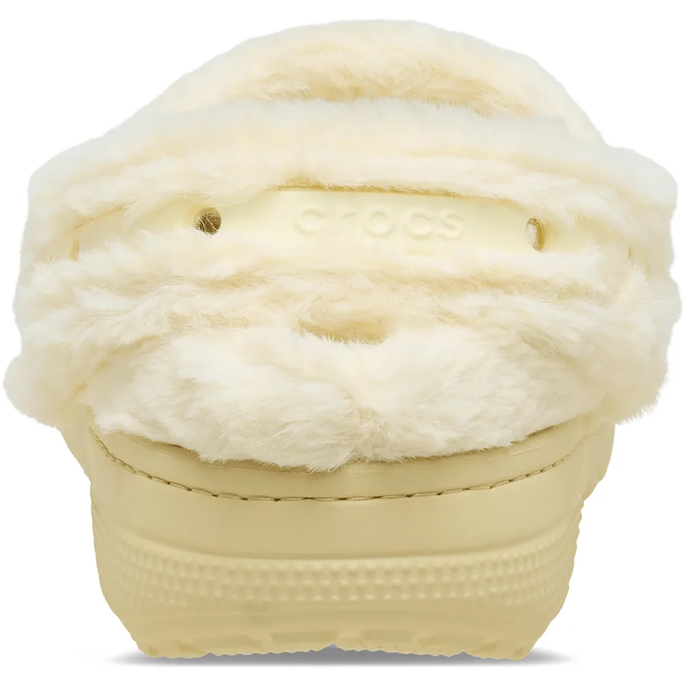 The sink-in soft footbed offers added comfort, while the faux fur backstrap features Jibbitz™ holes for personalization.