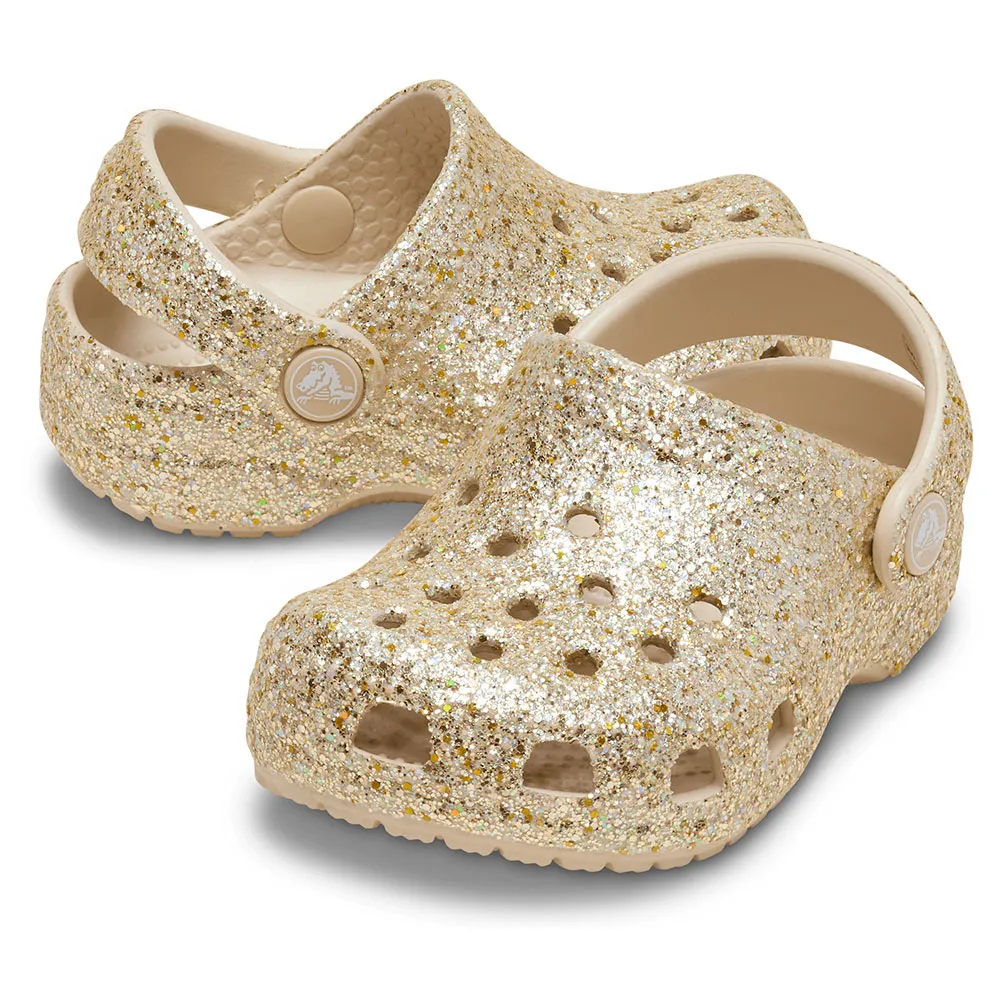 These fun shoes bring maximum sparkle to mini feet. The Infant Crocs Littles™ Clog is our iconic Classic Clog reengineered for little feet. And the chunky glitter on this version adds all-over shimmer to your little ones every move. Sparkle on!