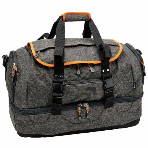 This 2-section bag is ideal for the long haul! The removable base section, measuring 56 x 32 x 15cm, is perfect for your bulkiest bits of gear. The zip closure on the 56 x 32 x 15 cm main section opens in a semicircle to ease access to vital bits of gear without having to empty the contents first! Straps are fitted on the sides of the bag to allow you to attach your rods. The bag also features two large side pockets as well as a smaller storage pocket for documents or small accessories. The bag can be comfortably transported thanks to the carry handles and shoulder strap.