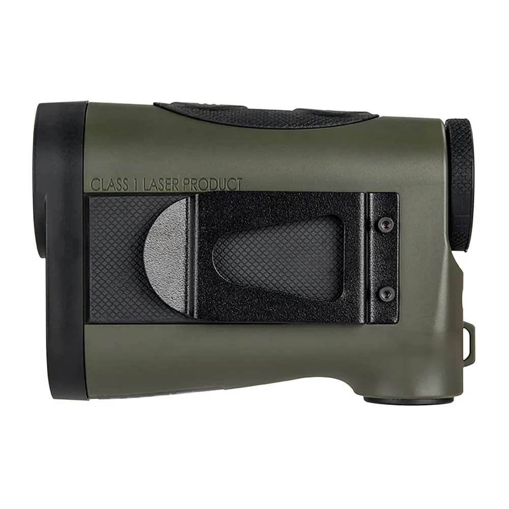 Laser rangefinder with 6x magnification, 1100 meters maximum range, 23 mm objective with horizontal and vertical distance meter, linear and angular range calculation.
