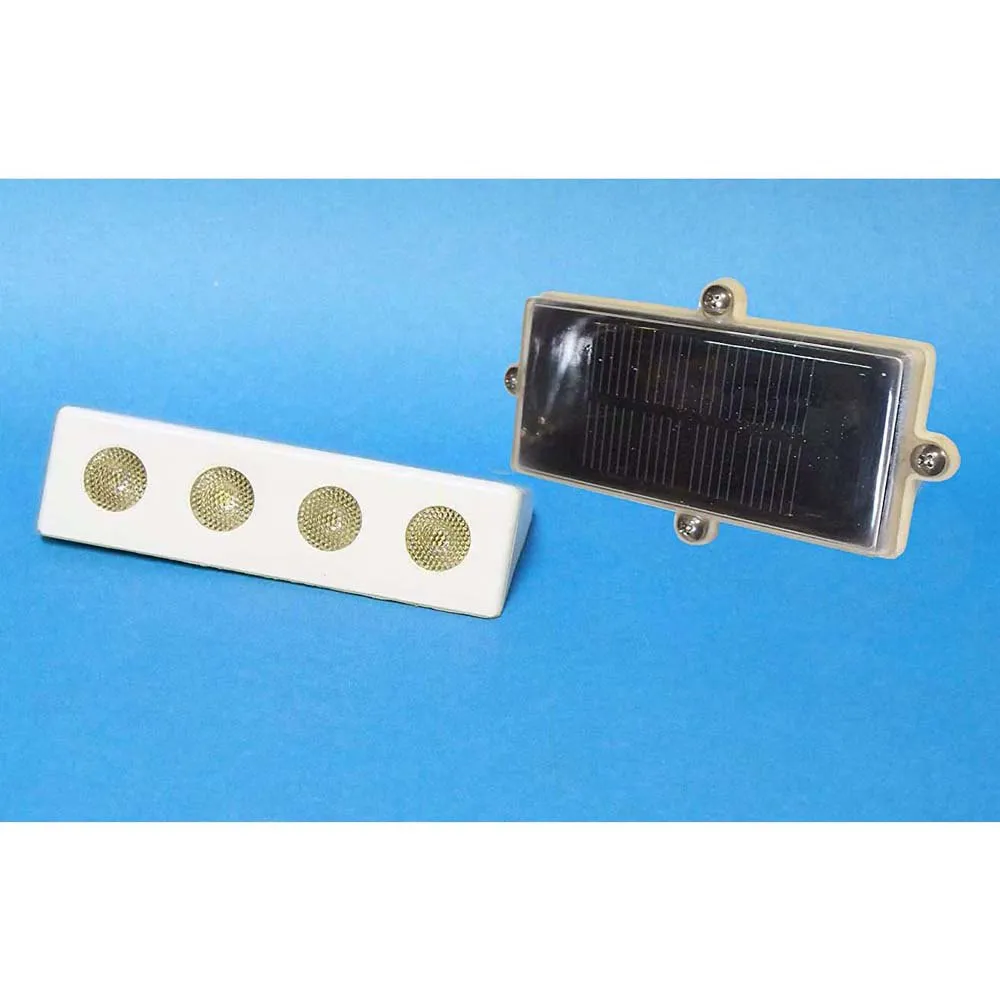 Includes a remote mount solar panel for charging and 4 bright white LEDs.