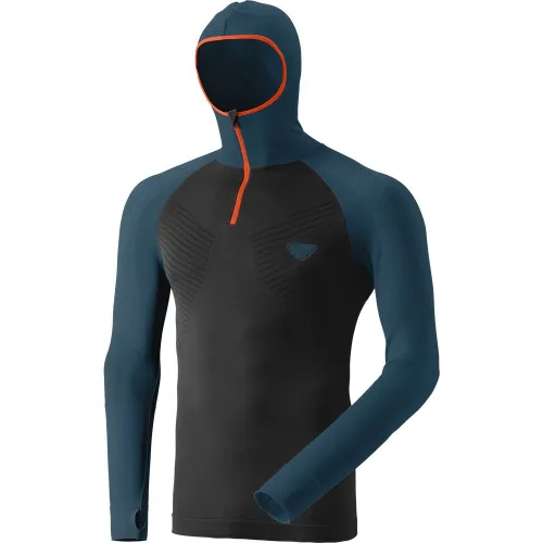 The FT Dryarn® Warm Hoody for men with a half-zip is the perfect base layer for descent-oriented ski touring enthusiasts. This hoody with its nearly seamless construction and intelligent body mapping is an absolute must-have for Free tourers who like it both cozy and functional. The base layer with its close fit snugs the body like a second skin. The Dryarn® Material used wins points for its excellent moisture management. It keeps your body warm and dry all day long even on a challenging climb to your perfect line. Intelligent body mapping construction ensures air circulation at strategically selected places. Due to its antimicrobial properties, the fabric prevents unpleasant odors, meaning your hut buddy won’t wrinkle his nose after an intense day. On cold, windy or snowy days, the snug-fitting hood with a zipper offers additional head protection and ensures you always feel extra comfortable. FT Dryarn® Warm Hoody. The base layer for powerful downhillers.