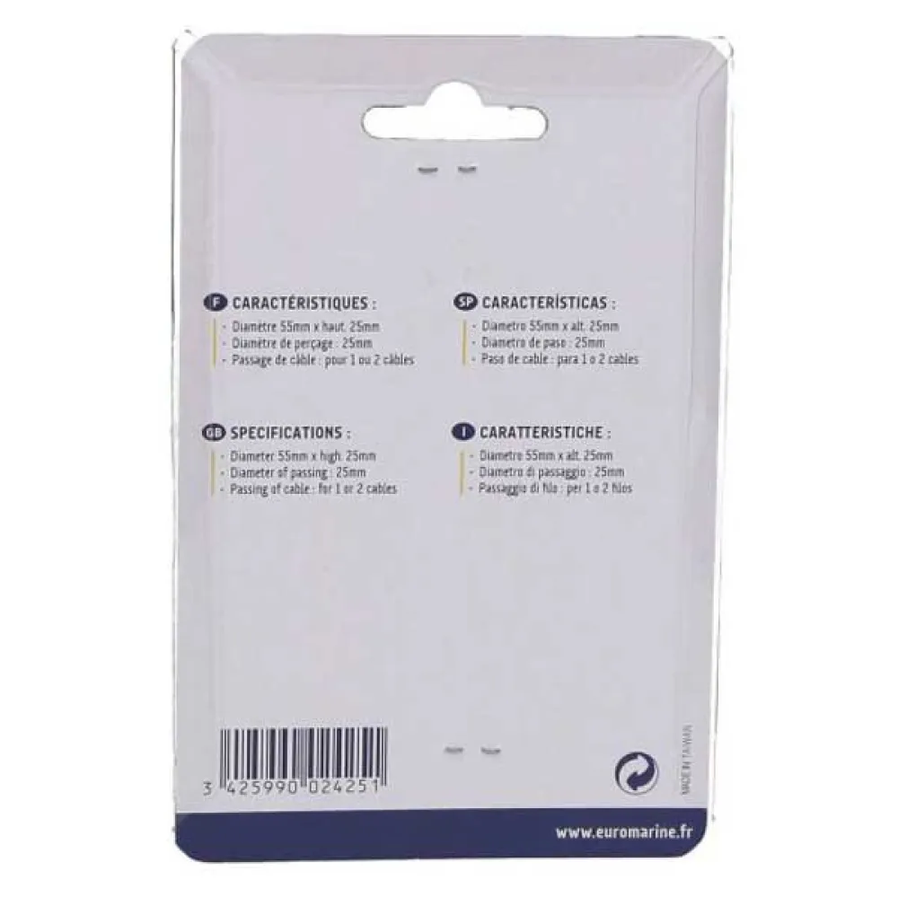 The EUROMARINE Plastic Cable Grommet is available in a range of sizes to accommodate various cable diameters, ensuring a snug and secure fit for your specific needs. This versatility makes it suitable for a wide range of applications, from powering onboard electronics and navigation equipment to running wiring for lighting and other essential systems. Choose the appropriate size for your cable diameter to ensure optimal performance and a watertight seal.