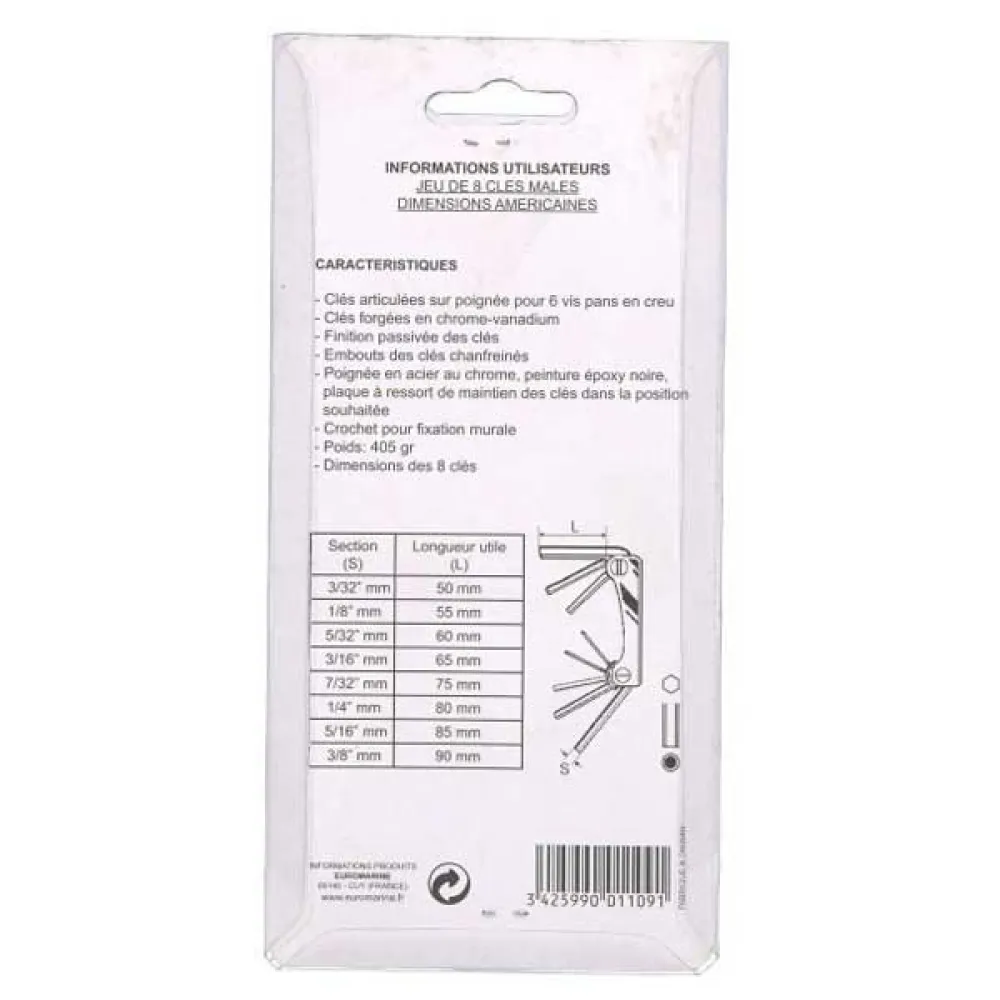 Specifications Euromarine Set Hex Key Multitool 8 units
