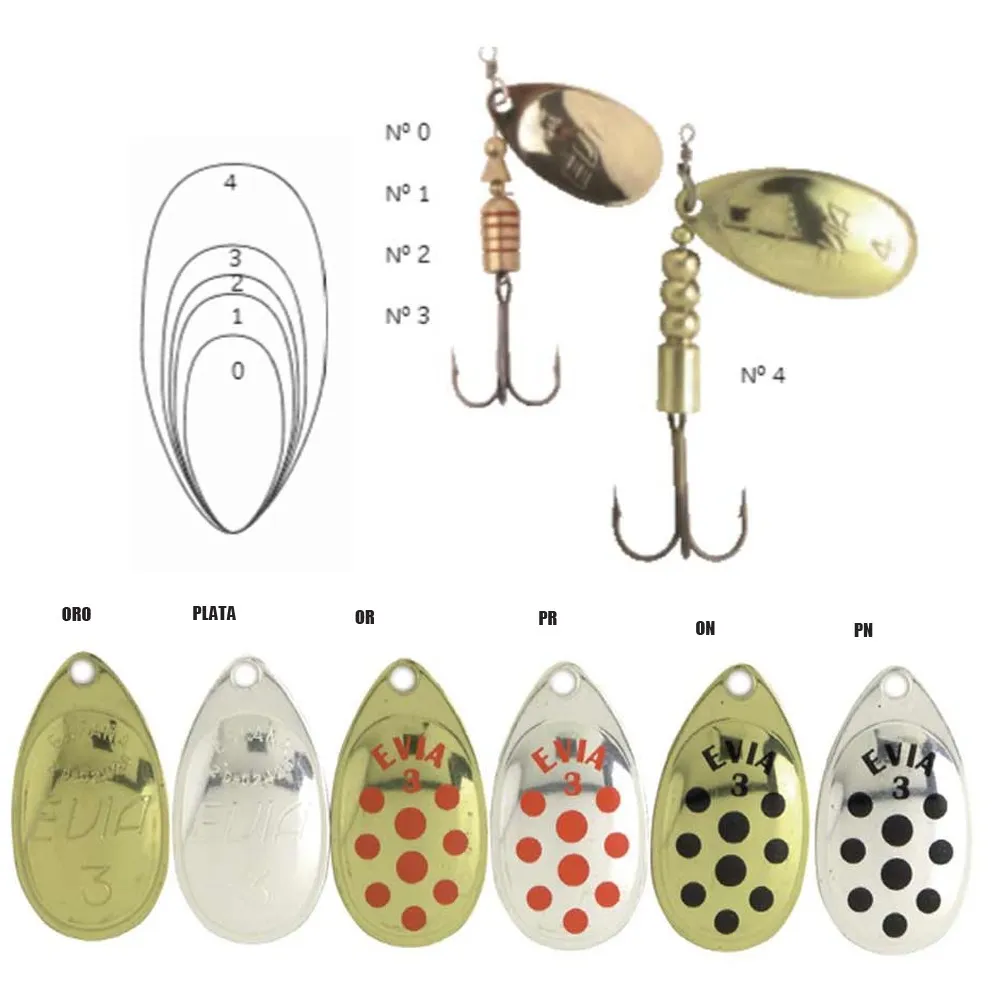 The Evia Coe Mod 12 spinnerbait is a traditional spinnerbait for river and reservoir fishing, with a fairly wide blade that allows for slower presentations than conventional spinners. It starts its action as soon as it hits the water, emitting irresistible flashes for trout and other predators. Barbed hook.