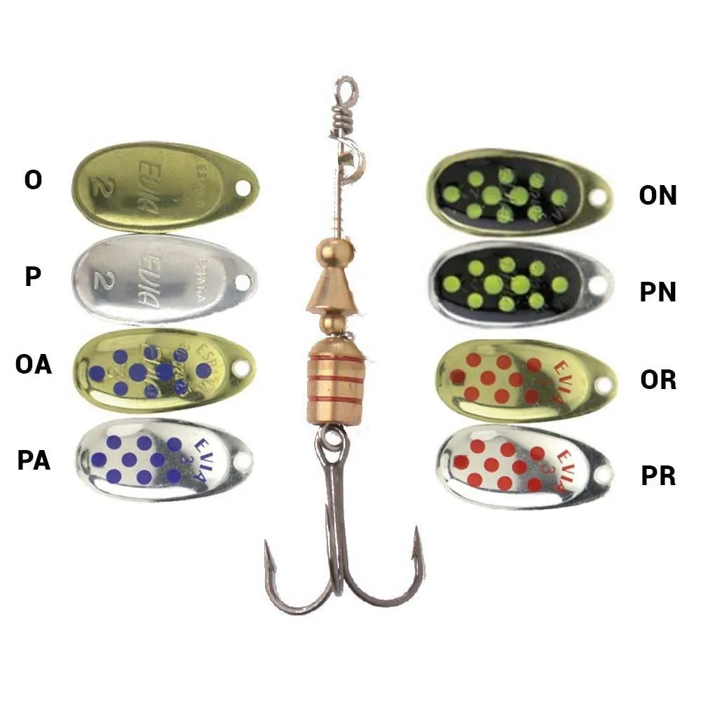 The Evia Dotty Mod 11 spinnerbait is designed for trout fishing in rivers and lakes, it starts its action as soon as it hits the water emitting irresistible flashes for trout and other predators. Barbed hook. This core principle is what makes the Dotty 11 so exceptionally effective. There is no delay; from the moment of impact, its dynamic movement begins, maximizing its time in the most critical strike zones and provoking an immediate, instinctual response from nearby fish.