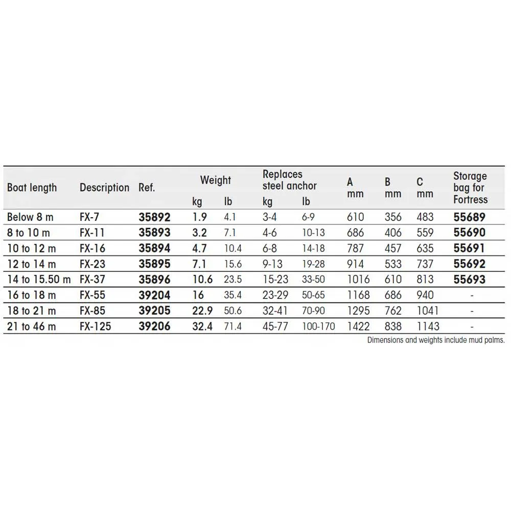 Exclusively on Fortress : the flukes can be adjusted from the normal 32° angle to 45°, to increase holding power in soft mud bottoms by as much as 400 %.