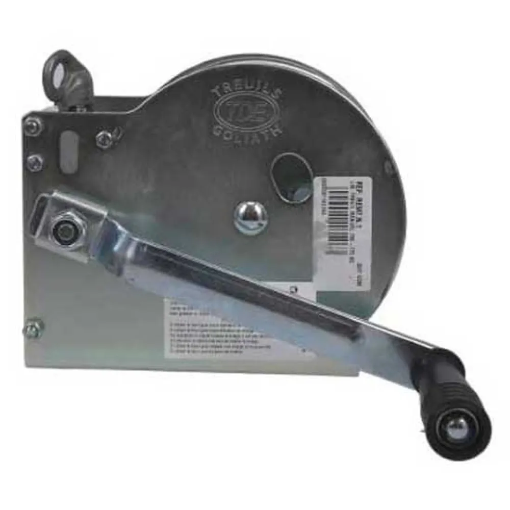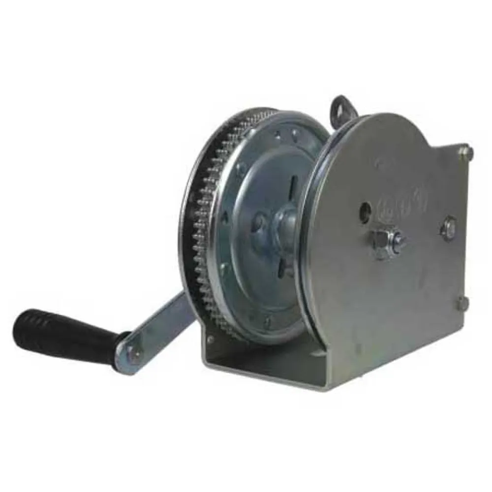 The GOLIATH 723kg Manual Ratchet Winch in grey is a versatile and sturdy tool specifically designed for boats and equipment transport. This robust and reliable winch is perfect for securely loading and unloading heavy items onto trailers or trucks.