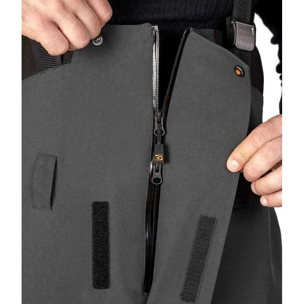 Reinforcement with waterproof and durable fabric on the buttocks and at the cuffs in areas most prone to damage.
