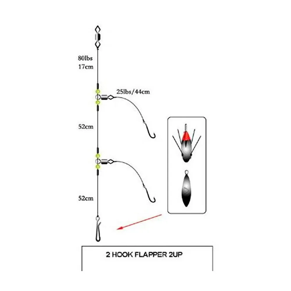 The GREYS 2 Hook Flapper Tied Hook offers a pre-tied, ready-to-fish solution, eliminating the need for complex knot tying and rig assembly. Simply attach it to your mainline and you´re ready to cast. This saves valuable fishing time and allows you to focus on what matters most – landing your prize. The "flapper" design allows for enhanced bait presentation, creating a more natural and enticing movement in the water. This attracts a wider range of fish species and increases your chances of a successful strike.
