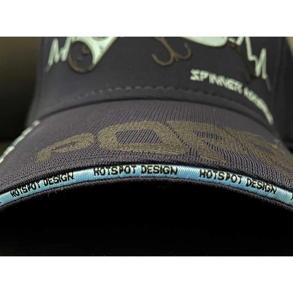 Cap front: Popper lure in well evident embossed printing with “adrenaline” lines embroidered on the two sides.