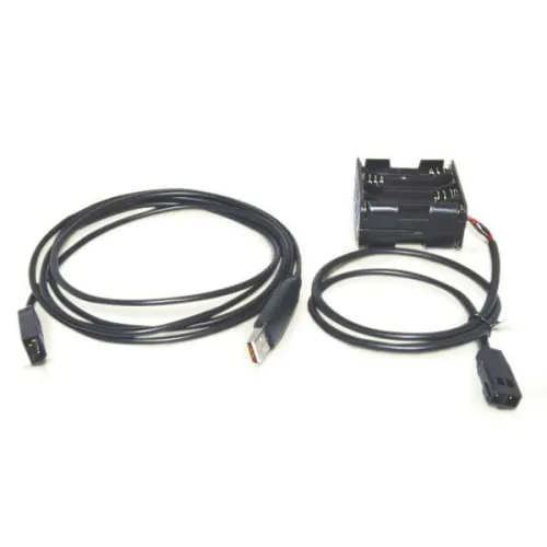 The Advanced Accessory System PC Connection Kit includes: PC USB port connector, AA Battery Power Cable and detailed instructions.