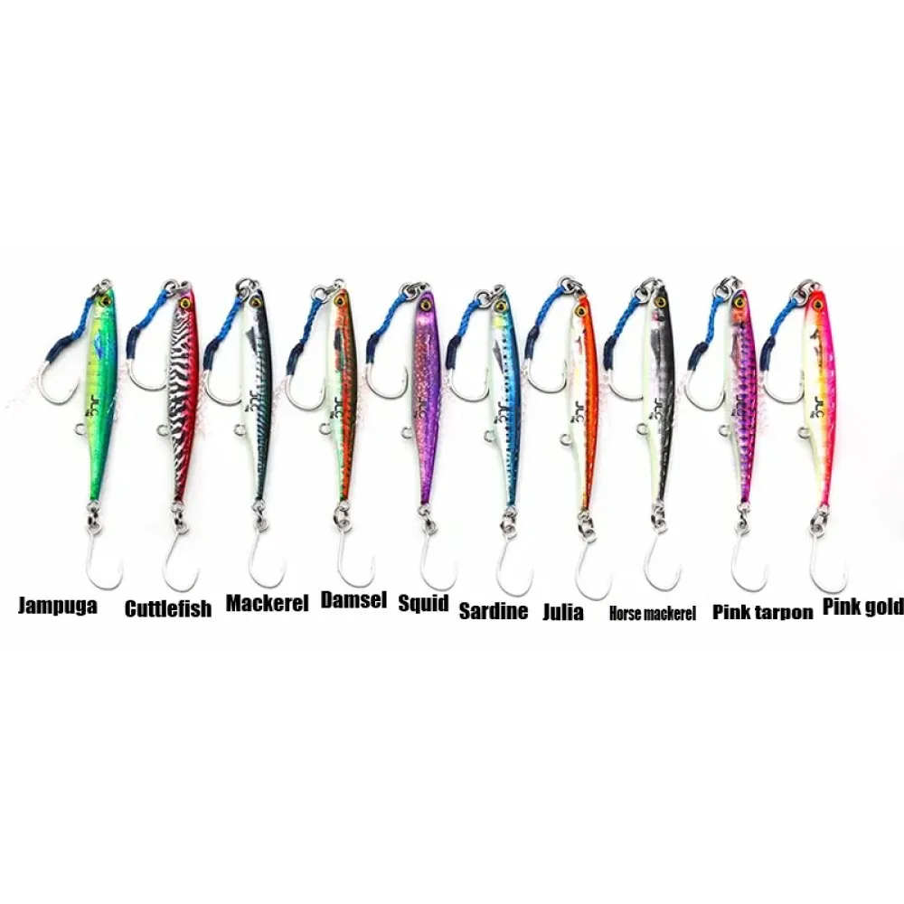 JLC Real jig 15g offers a variety of attractive and effective lures for fishing, including Caballa, Calamar, Doncella, Jampuga, Julia, Jurel, Pink Gold, Sardina, Sepia, and Tarpon Rosa. These jigs are designed to mimic the appearance and movement of real baitfish, making them irresistible to predators. The 15g weight of these jigs allows for easy casting and precise control while fishing. Whether targeting larger game fish or smaller species, the JLC Real jig 15g series offers a versatile and reliable option for anglers of all skill levels.