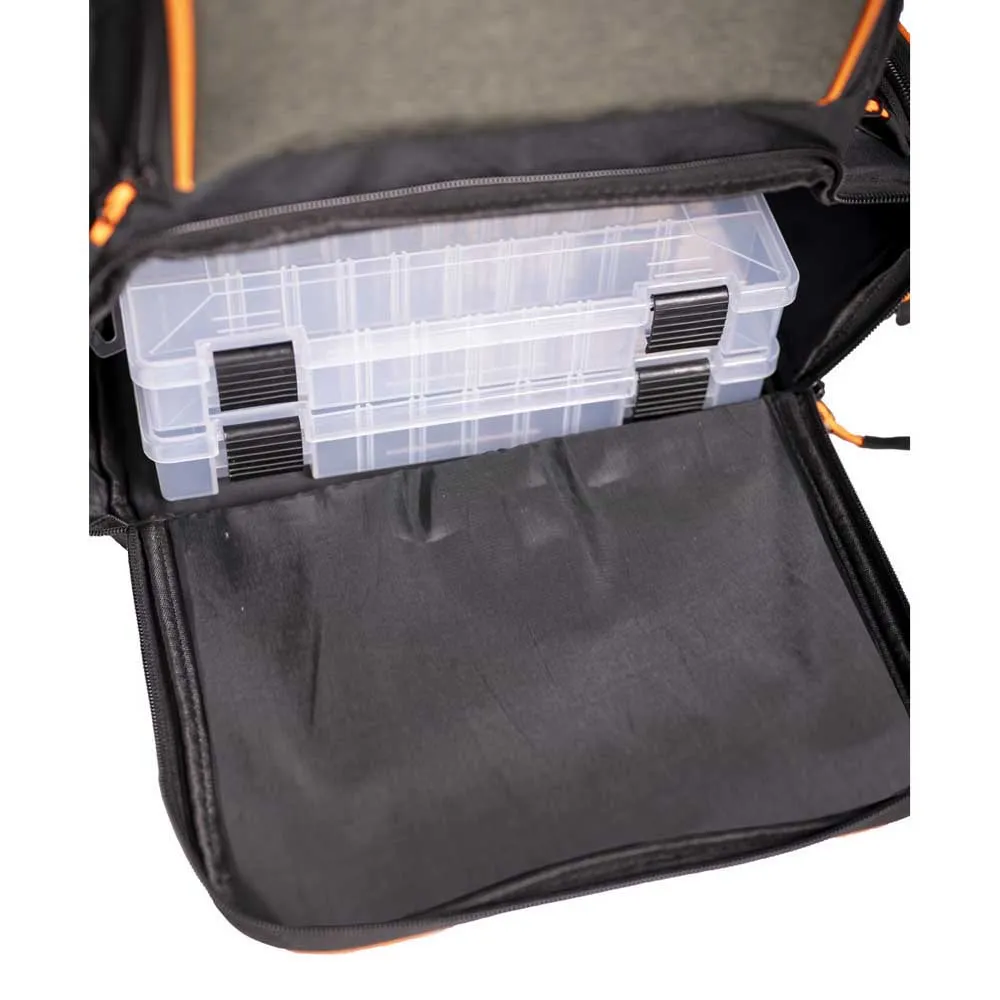 Designed for the modern angler, the Kinetic Rucksack combines smart organisation and durable construction to keep your gear secure in any fishing environment. Featuring a thoughtfully laid-out interior with eight specialised compartments and two boxes, the Kinetic Rucksack ensures that every piece of your fishing equipment has its own dedicated space. Comfort is a priority – the padded shoulder straps and a ventilated back panel ensure comfort, even through a whole day of fishing.