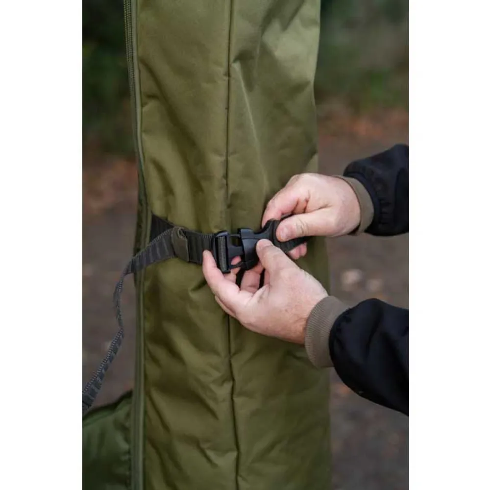 An innovative new way to carry your loaded rods and reels, alongside your shelters, brollies and bankware. The compartment for your rods hinges away from the rear shelter compartment, providing all the benefits of a quiver with added rod protection. Has a generous padded area designed to house rods and reels comfortably, plus a larger rear compartment that fits all Korum shelters and brollies inside. Also features a simple outer pocket for nets, net handles or banksticks. There is also an outer quiver and strap facility, for wet items like shelters, tripods, and nets. Complete with removable and adjustable padded shoulder strap for comfortable transportation.
