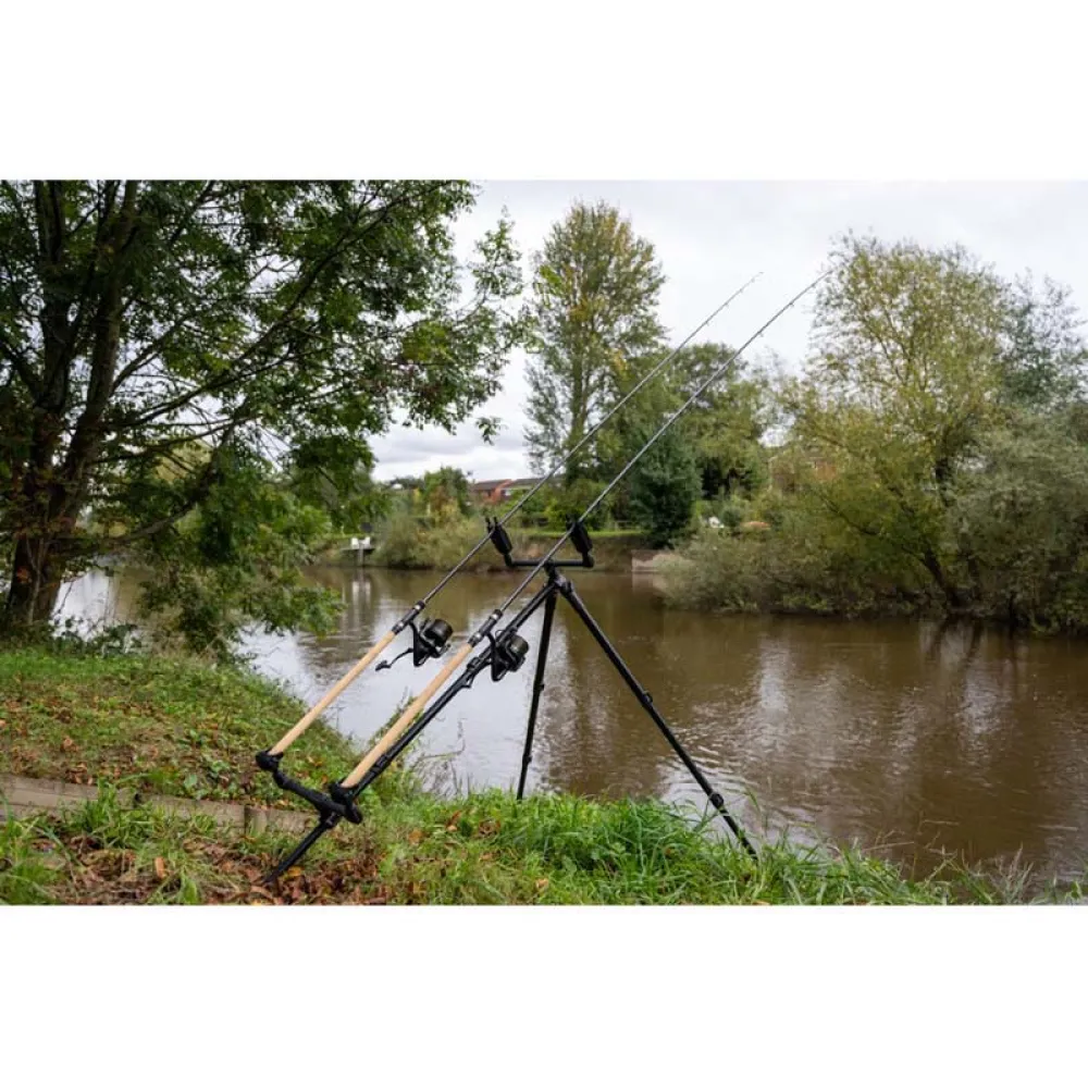 Progress Compact River Tripod. A compact version of our legendary River Tripod, now with front and rear buzz bars. This super stable bit of kit is made using anti-twist extrusions that provide a totally stable platform for your rods and reels. The frame can be extended during use but packs away neatly via double-extending cam locks, making it much more compact during transit. The chunky buzz bars are incredibly strong and feature our brilliant quickl release system with no threads, so you don’t need to screw them in and out to use them or remove them, simply flick the cam switch and you’re ready to go. The rear buzz bar can be adjusted to different positions on the frame. The front legs can be adjusted to almost any angle and also feature height adjustment via cam lock switches. Comes with simple carry bag.