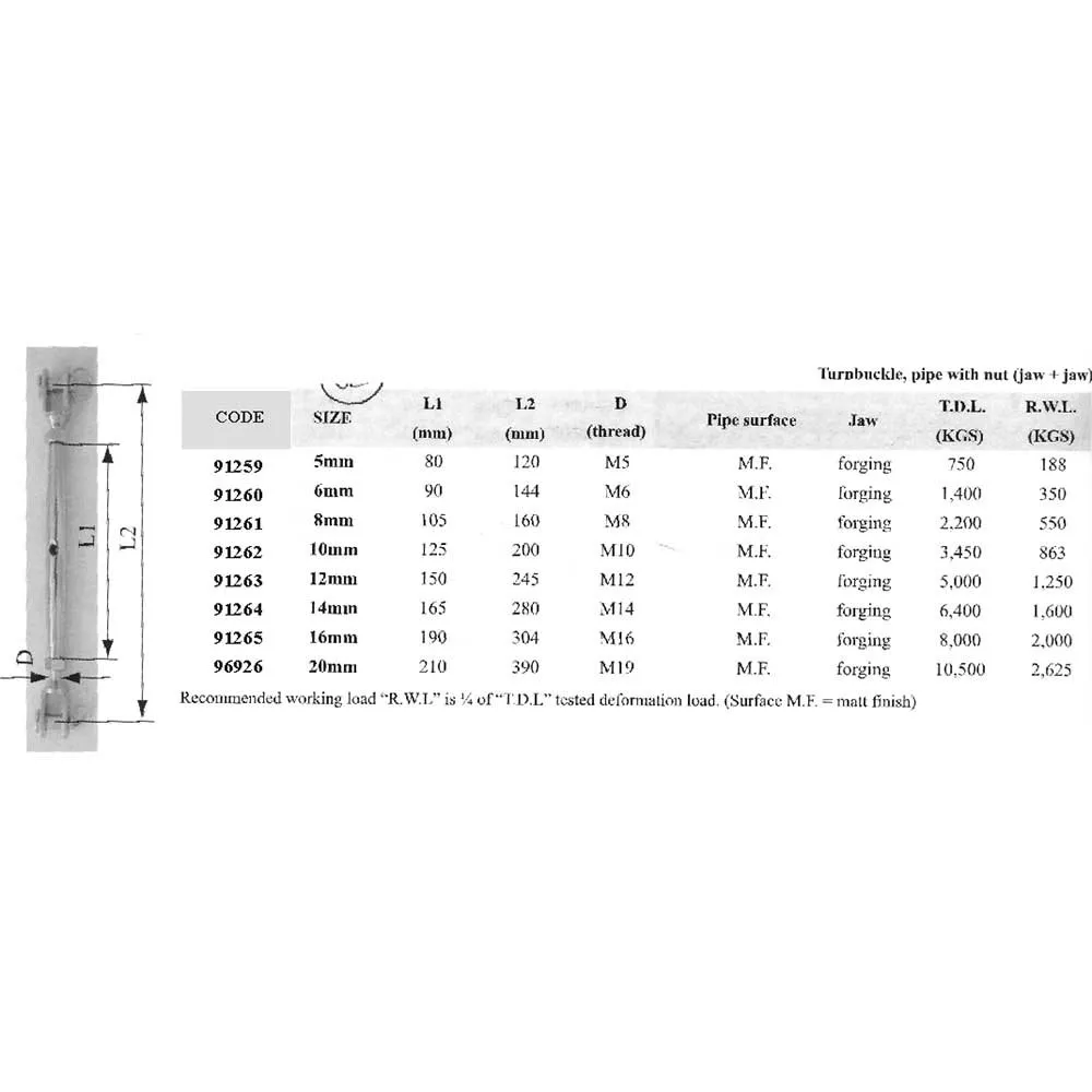 Specifications Lalizas Pipe Turnbuckle Inox 316 Tensor