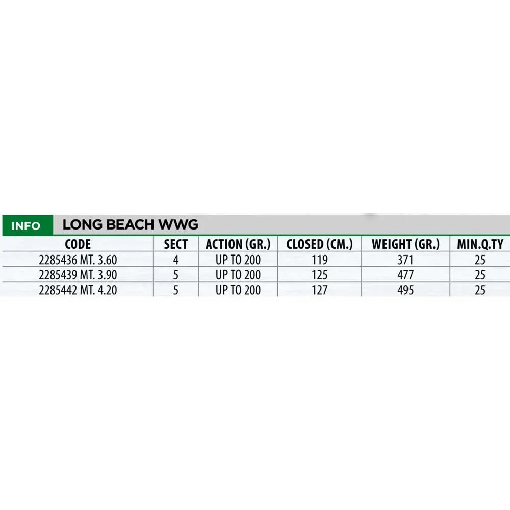 The LINEAEFFE Long Beach WWG Telescopic Surfcasting Rod is more than just a fishing rod; it´s an investment in your passion. Experience the difference that quality and performance can make in your surfcasting adventures. Upgrade your gear and conquer the waves with the LINEAEFFE Long Beach WWG. This rod is built to withstand the toughest conditions and deliver the results you demand. From its robust construction to its sensitive tip, the Long Beach WWG is designed to help you land your next trophy fish. Don´t settle for anything less than the best. Choose the LINEAEFFE Long Beach WWG Telescopic Surfcasting Rod and experience the ultimate in surfcasting performance. This rod is a testament to LINEAEFFE´s commitment to innovation and quality, providing anglers with the tools they need to succeed on the water. Invest in the LINEAEFFE Long Beach WWG and elevate your surfcasting game to the next level.