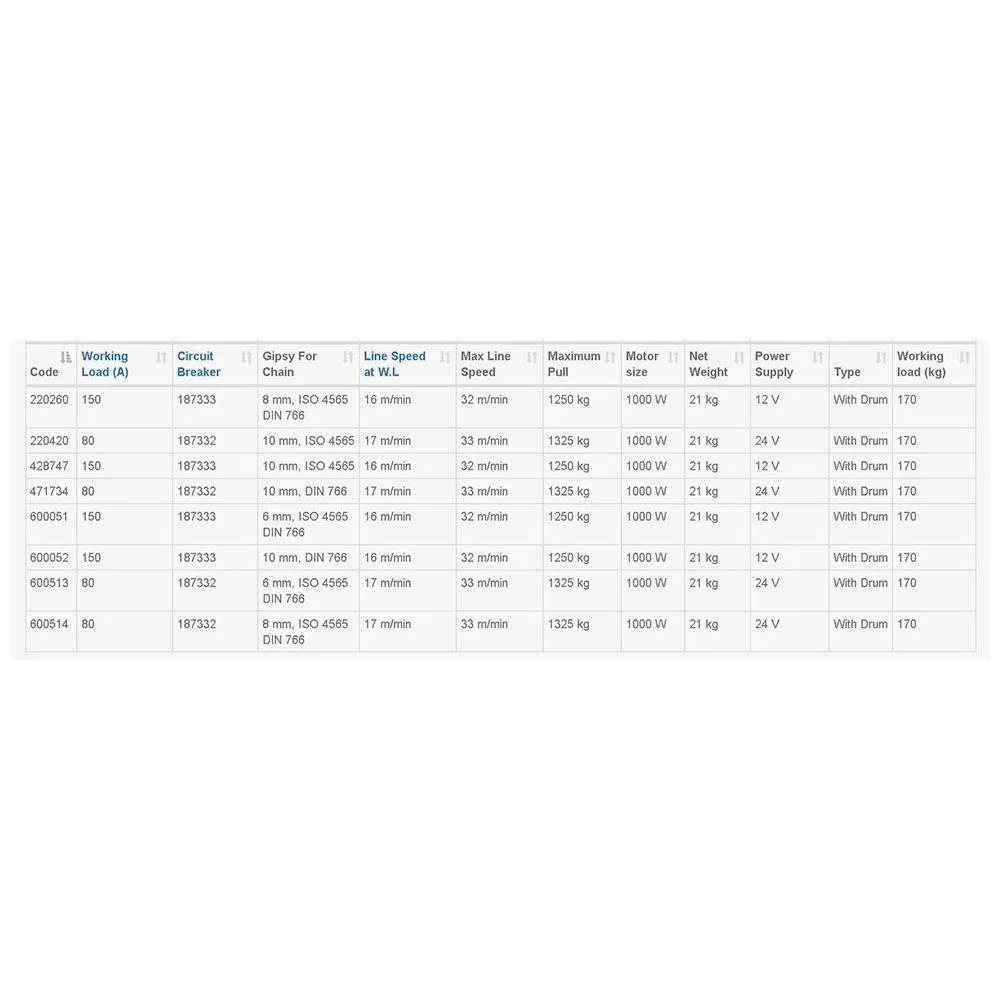 Specifications Lofrans Kobra Windlass