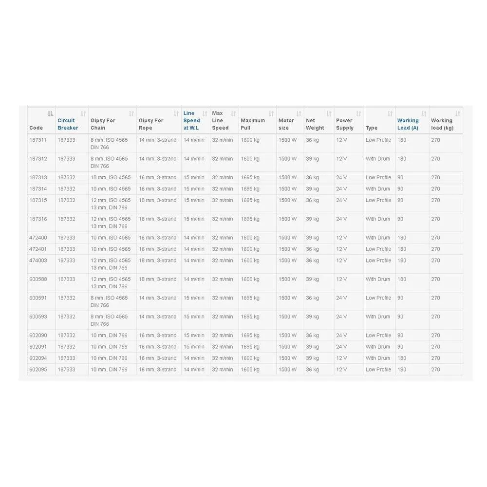 Specifications Lofrans Project 1500 Windlass 24V