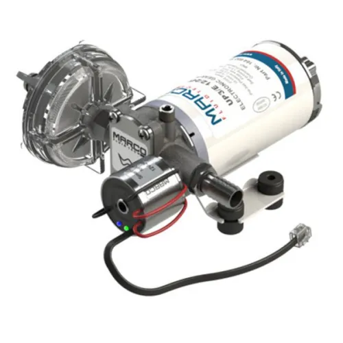 Self-priming automatic electric pump with helical PEEK gears, integrated check valve and electronic control. Nickel-plated brass body and stainless steel shaft. Main applications: fresh water pressure systems and shower kits on boats, rubber dinghies, sailing boats and campers.
