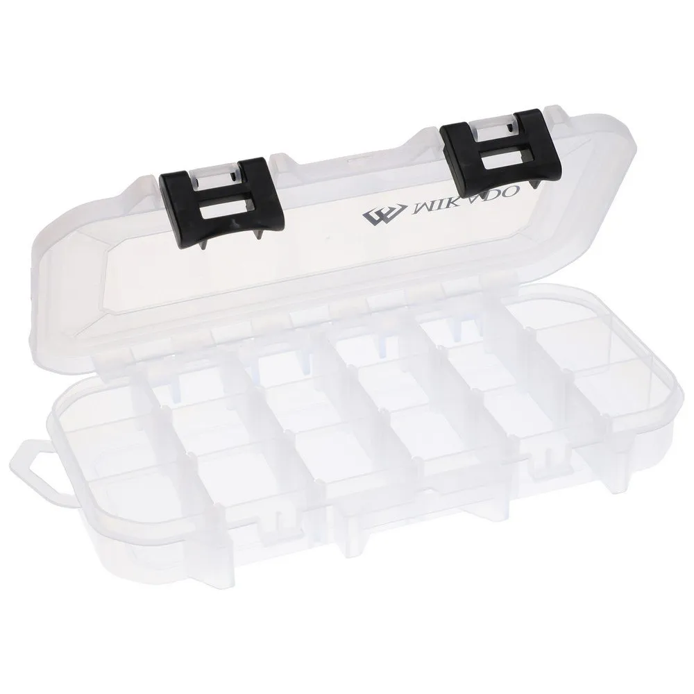 Very practical, lure and accessories box, made of strong plastic with sturdy latches. Transparent finish allows to easily locate trinkets; adjustable compartments enable individual arrangement.