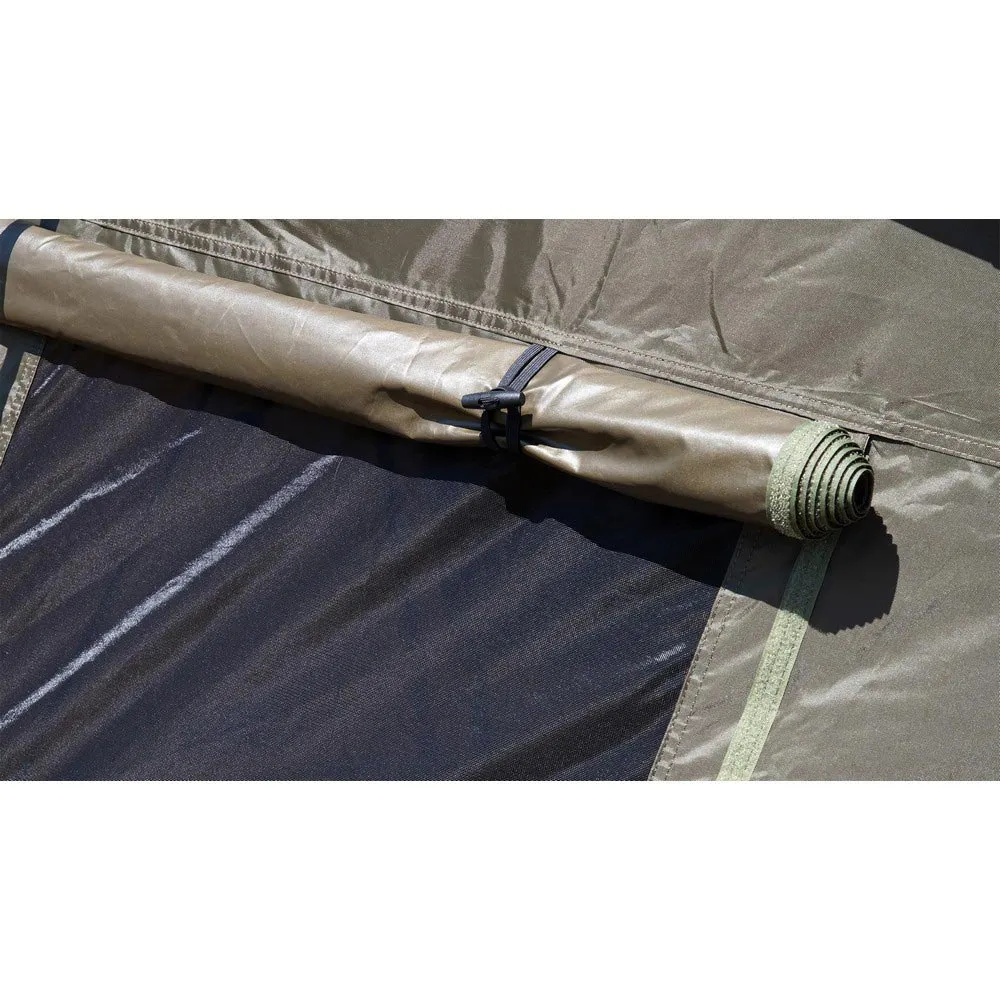 Top-class, 2 man bivvy fitted with a handy awning, vent-windows both in front and back and sturdy, heavy-duty floor. Inner dimensions guarantee comfort of use for two anglers with all the necessary gear.Specification: Stable, aluminium frame with 16mm poles. 210D PU 10000mm hydrostatic head fabric. Front and rear mesh windows. Rolled back front for open space. Additional PVC window. Heavy duty PVC groundsheet and pegs in set. Transport bag.