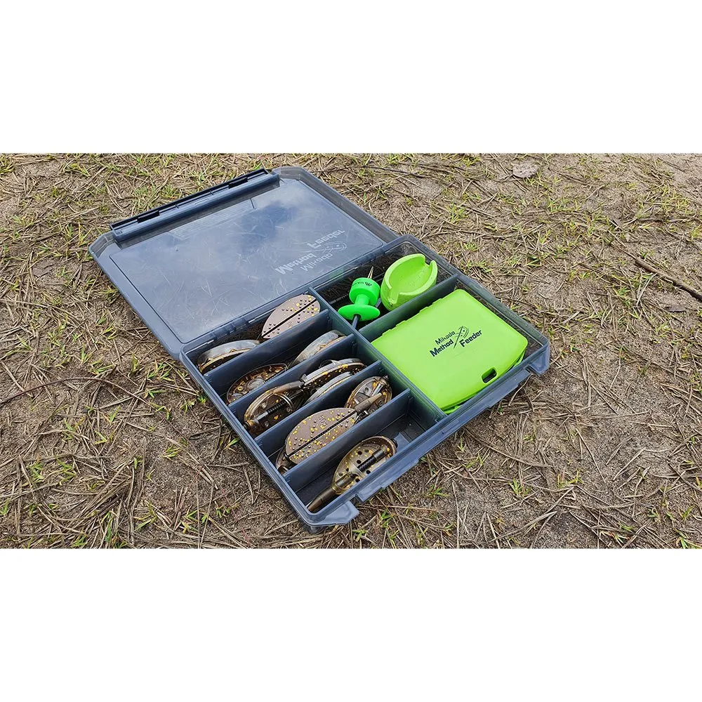 High-quality box with a latch, dedicated to the method feeder technique. Designed to accommodate feeders, a mold and a flag tool. Comes with a smaller box for all small accessories - fasteners, stoppers or spare rubber bands.