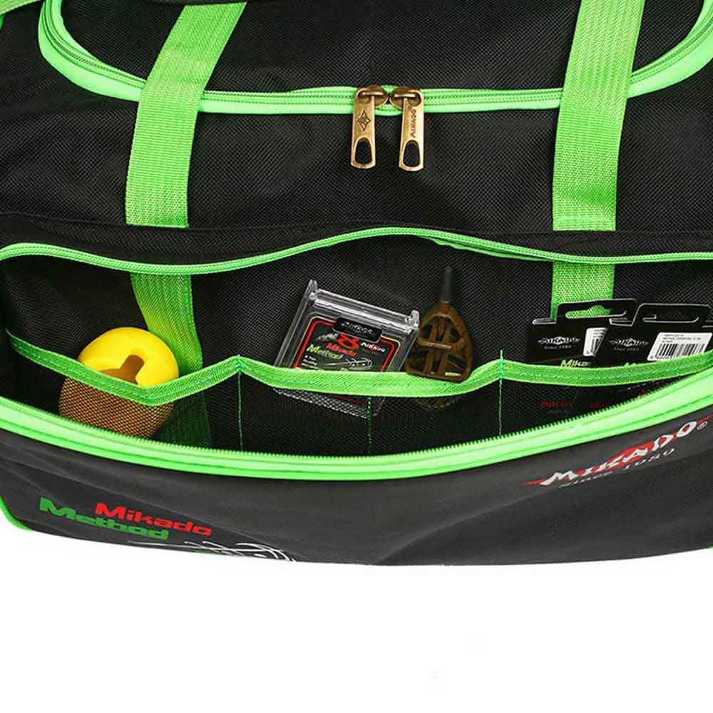 Very comfortable, versatile bag that can fit all feeder trinkets and pellet or bait. Made of special, easy to clean fabric. Net on side pockets is great for wet accessories transport.