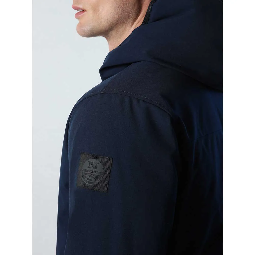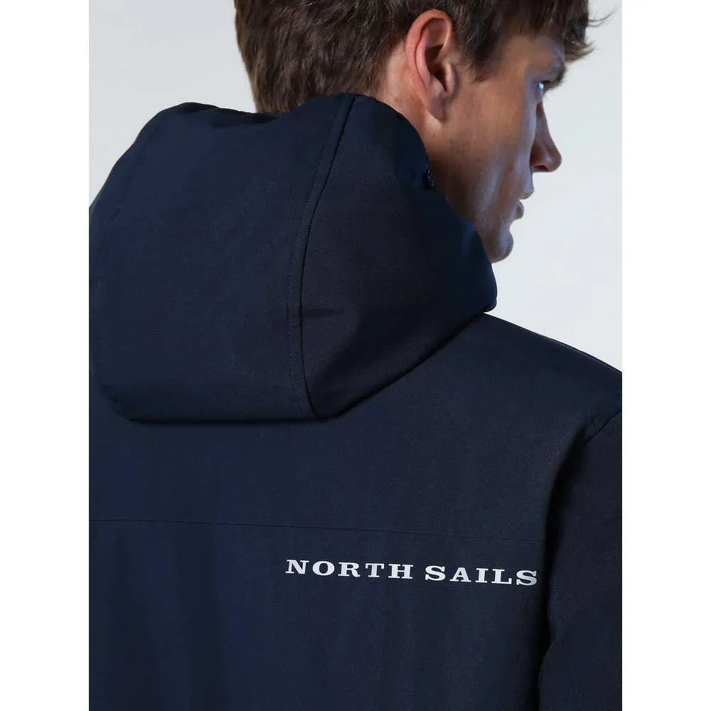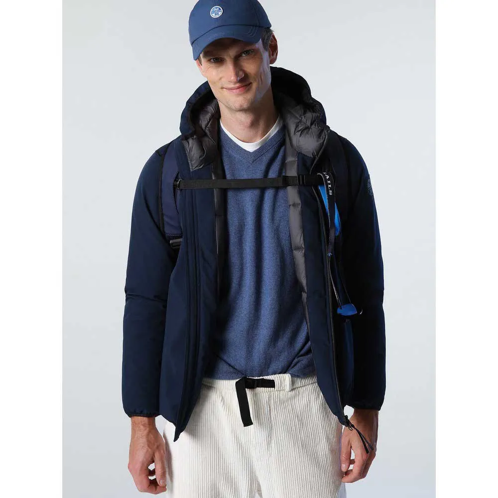 Hobart jacket made from recycled softshell. Finished with a hood, zip pockets and zip fastening. North Sails logo on the sleeve. A fully functional design with contemporary appeal: the Hobart jacket is crafted from recycled softshell fabric with a breathable, water-repellent texture. A must-have staple in your winter wardrobe, it offers maximum protection thanks to its high-performance design, complete with a cosy hood and Repreve padding: an innovative fibre produced from recycled plastic bottles. Detailed with a reflective North Sails print on the inside.