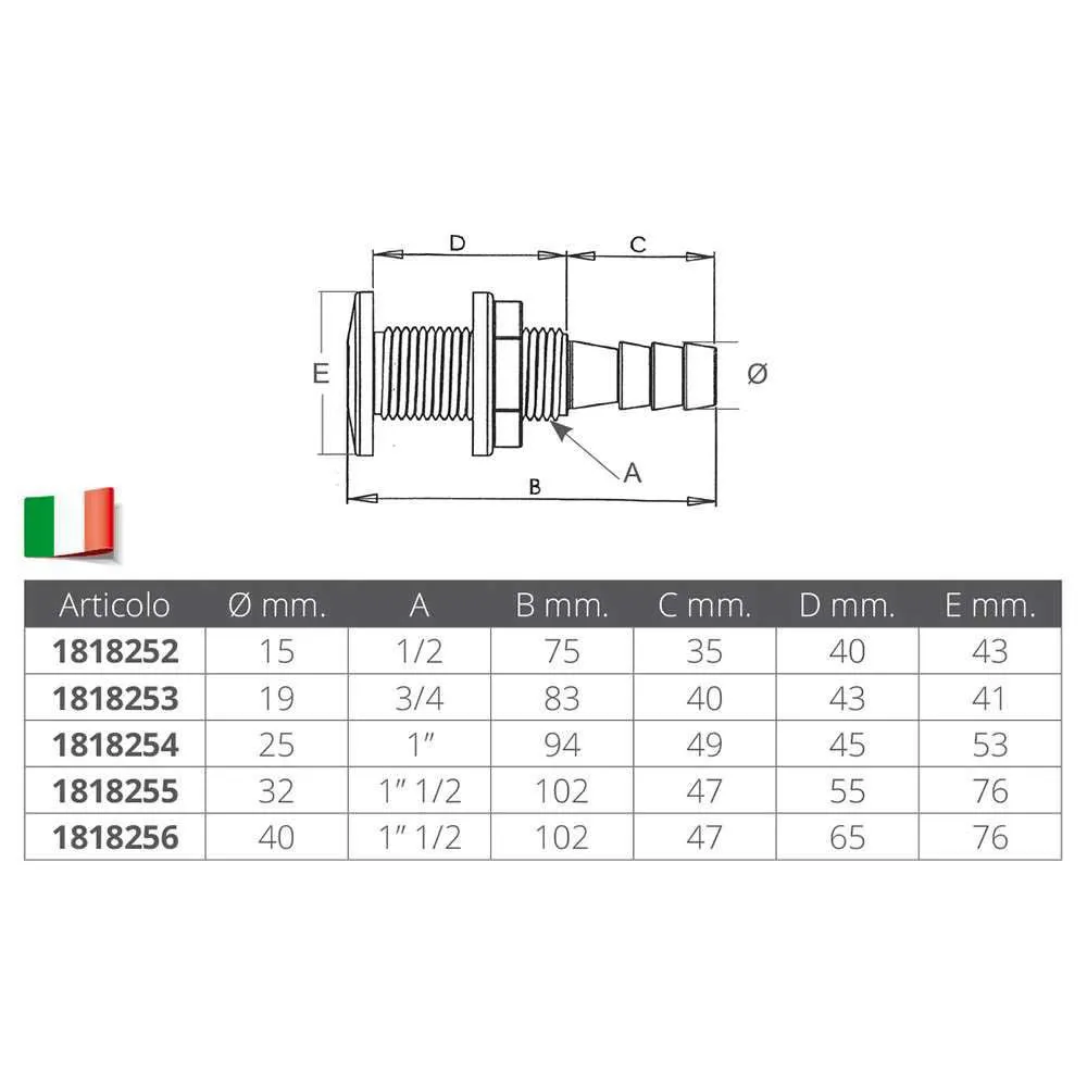 Upgrade your boat´s plumbing system with the NUOVA RADE Thru-Hull, a superior choice for reliable and durable below-waterline connections. Engineered for long-lasting performance in harsh marine environments, this thru-hull fitting ensures a secure seal, minimizing the risk of leaks and maximizing peace of mind on the water. Choose the NUOVA RADE Thru-Hull for a robust and dependable solution that stands up to the challenges of the open sea.