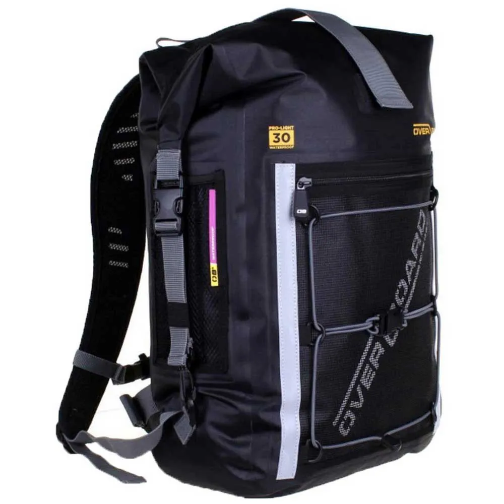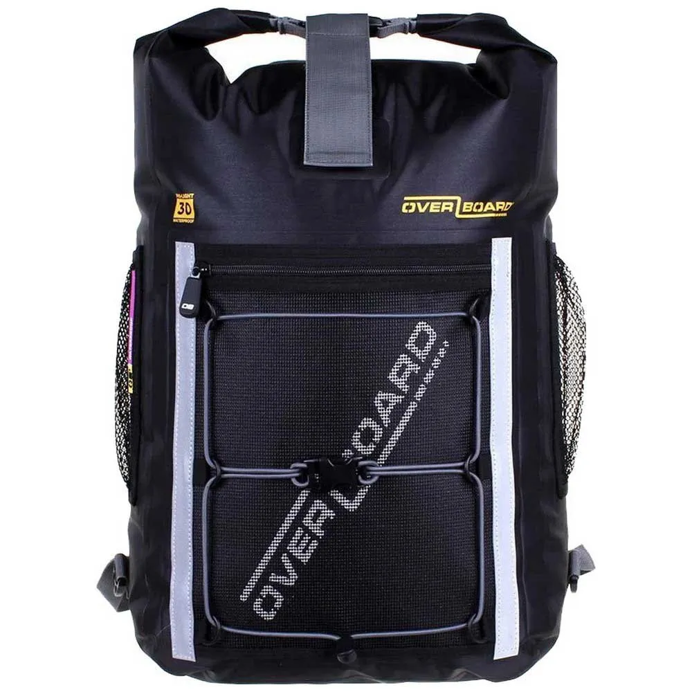 - From the large front mesh zip pocket with reflective strips to the padded shoulder straps and air-flow back panel, this feature-packed OverBoard Pro-Light Waterproof Backpack is a comfortable and handy bit of kit for any water-based sportsman or cyclist.