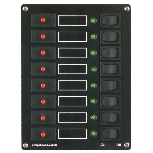 The PHILIPPI STV 108 8A Circuit Panel Black is a sophisticated and reliable electronic instrument designed for electrical circuit protection and distribution. This circuit panel is built to high-quality standards and is ideal for use in marine, automotive, or industrial applications.