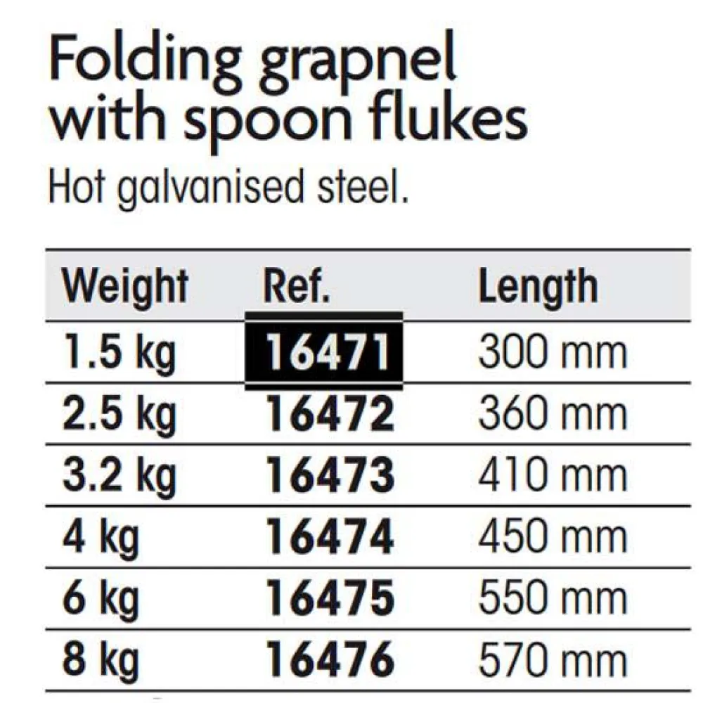 Specifications Plastimo Folding Grapnel with Spoon Flukes 6 Anchor