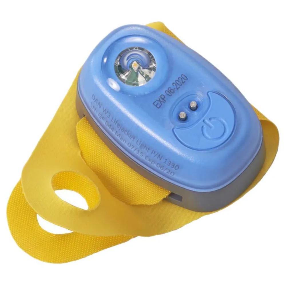 The light activates automatically when in water and can be turned off manually. Fits all types of lifejackets.