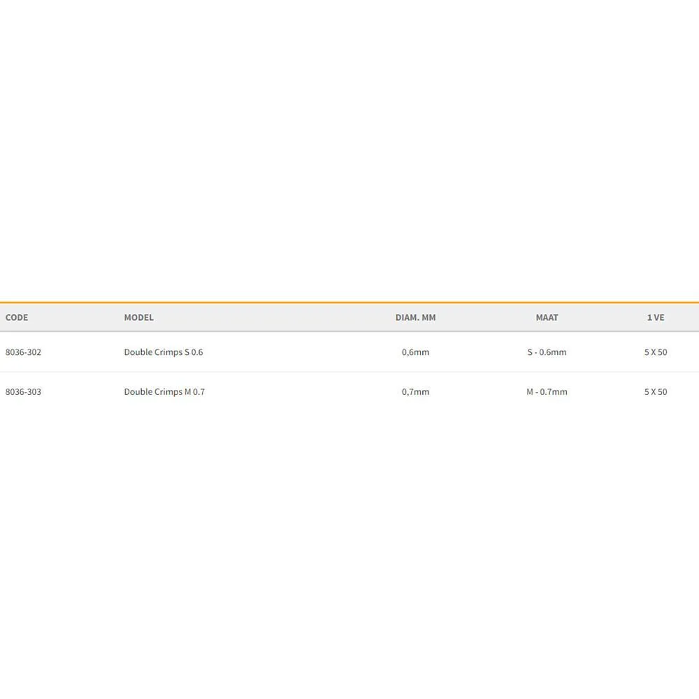 These smooth double crimps create a rock solid (loop) connection. Ideal for making (stiff) boom sections, combi-rigs or short chod rigs. To be used for rig or leader material between 0.47 and 0.70mm in combination with the Pole Position Crimp Tool. The crimps are available in two sizes and come in a handy box.