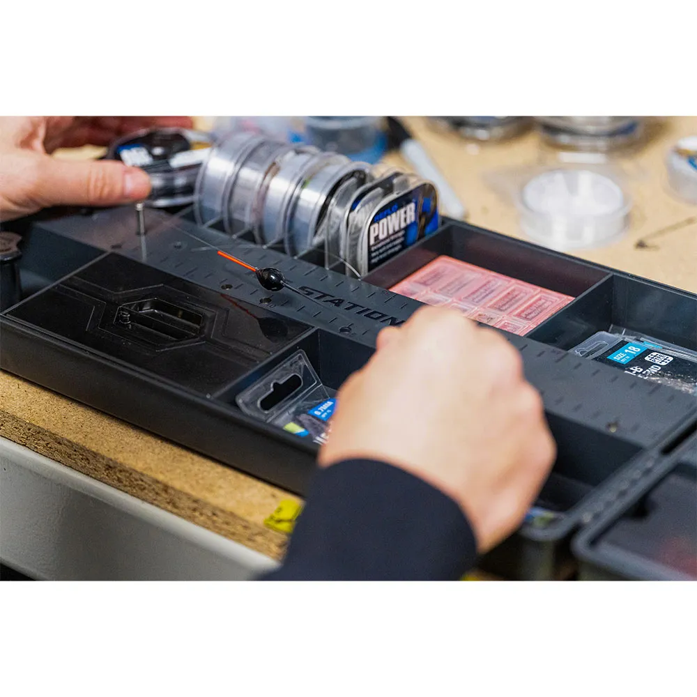 Ideal for rig preparation, the Rig Station stores all of the essential rig making materials such as line, shot, floats and small accessories like hooks and silicone.