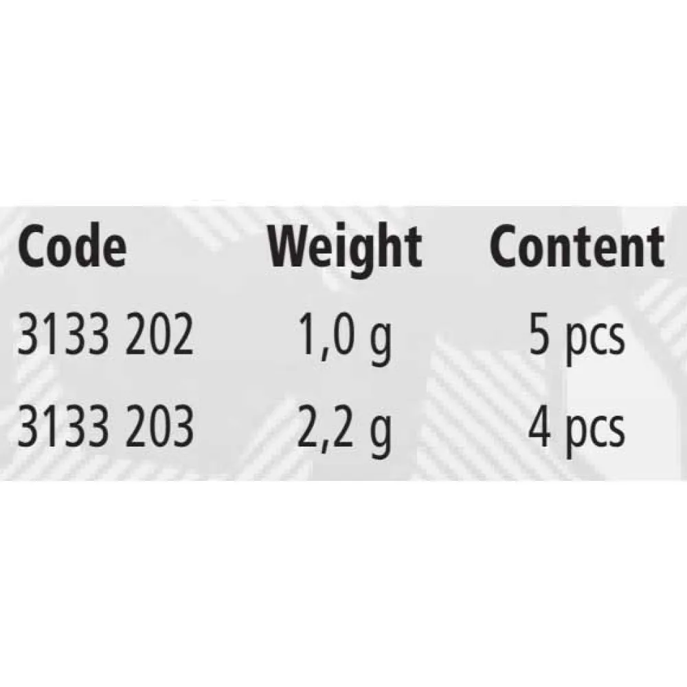 Quick and easy mounting of weights to leader rigs by simply wrapping around instead of squeezing as usual; this also protects the leader material used. Made of tungsten resin material.