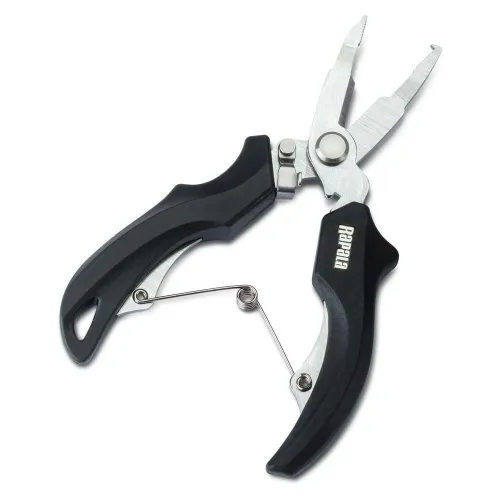 The angler´s all-purpose tool. With the Rapala Split Ring Scissors, you can modify your lures with ease: change hooks, split rings, and cut excess line/braid. The beak of the split ring pliers can be used to open split rings from size. Made from high-quality stainless steel, the finely honed, serrated edge of these cutting pliers cuts braid with ease. Easy to handle thanks to the spring-loaded opening and designed for all types of fishing.