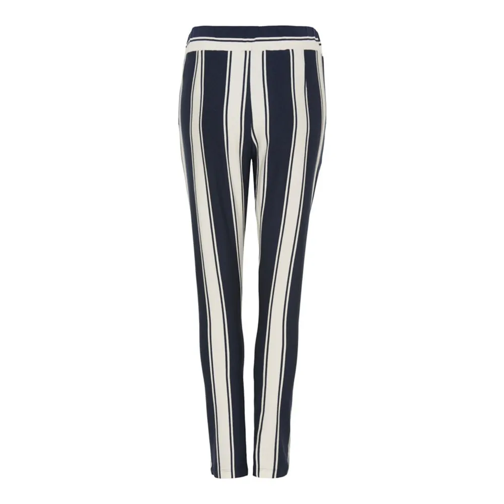 The navy stripe pattern adds a touch of sophistication to the overall look, making these pants suitable for both casual and semi-formal occasions. The high-quality fabric ensures comfort and durability, allowing for long-lasting wear.