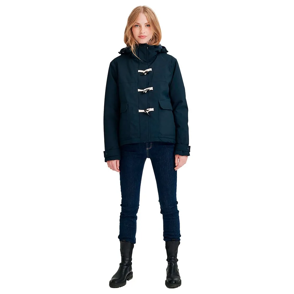 Quilted logo-printed lining and classic duffle coat imitated horn toggles and rope fastenings.