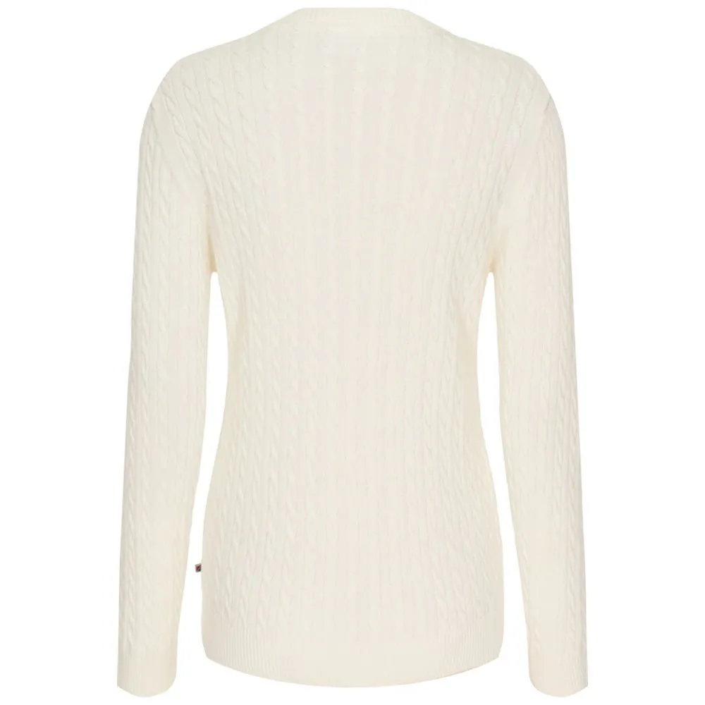 Classic organic cotton cable knit sweater with crew neck and redgreen logo embroidery at left sleeve.