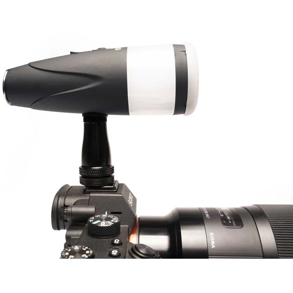 Attach your RidgeMonkey Multi Lite Plus or Bivvy Lite Bankstick Adaptor (both available separately) to any standard camera hotshoe with this nifty bracket: perfect for lighting trophy shots at night or adding further brightness when faced with low light conditions. Featuring a universal 3/8 BSF top fitting, two knurled locking collars and an additional 3/8 to ¼ adaptor to facilitate further use with a large variety of standard camera accessories.
