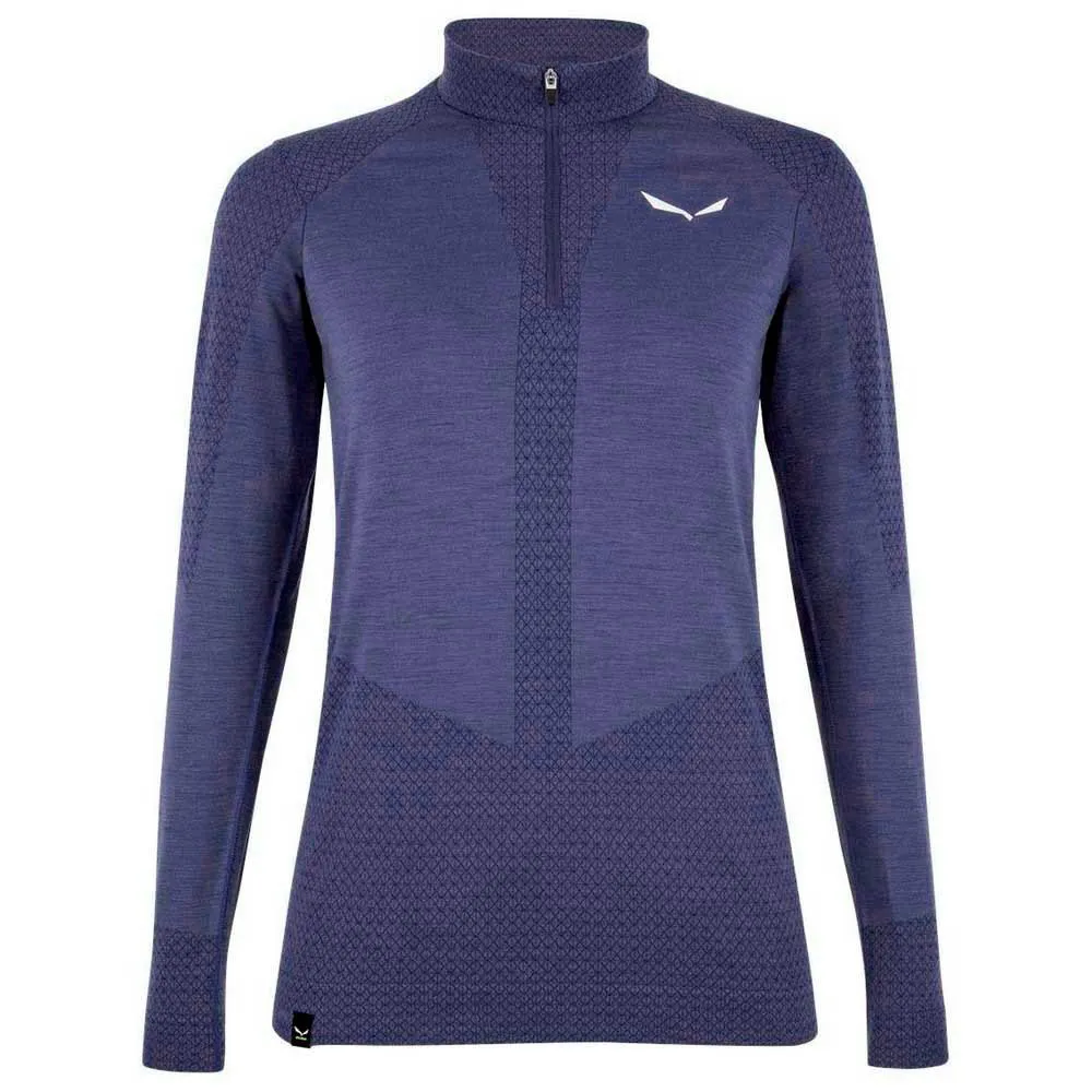 Experience next-level warmth and performance with the SALEWA Zebru base layer. Made in Italy, this top blends super-fine merino wool for optimal wicking and comfort with innovative Responsive technology. It recycles your body´s natural energy to boost blood flow, increase warmth, and speed up recovery. The seamless, bodymapped design and half-zip offer a chafe-free, athletic fit, perfect for intensive mountain activities in any condition. This is the ultimate performance baselayer for multi-day use