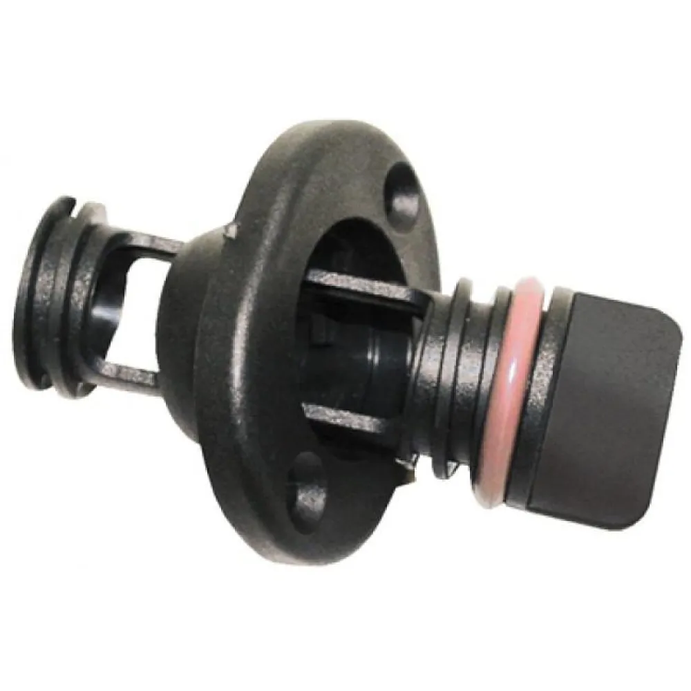 Screw type drain plug features an “O” ring for positive sealing. Fine threads maintain sealing under high vibration conditions. Mounts in a 1´ diameter hole and mounts with two #8 screws. Mounting flange: 1 1 / 2 ´ x 2´. Ideal for boat transoms, fish wells, ice chests. Plug is attached.
