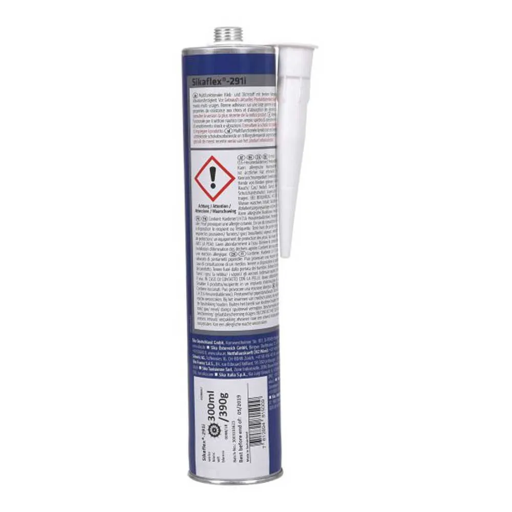 Meet SIKA 291, the high-performance marine adhesive and sealant for all your boat maintenance needs. This versatile, one-component sealant creates a durable, watertight bond on fiberglass, wood, and metal. Engineered to withstand harsh marine environments, it resists saltwater, UV radiation, and weathering. It forms a protective barrier against water intrusion and corrosion, preventing leaks and preserving your boat´s structural integrity. Easy to apply for a smooth, professional finish, it´s perfect for sealing everything from hull-to-deck joints to windows and fittings