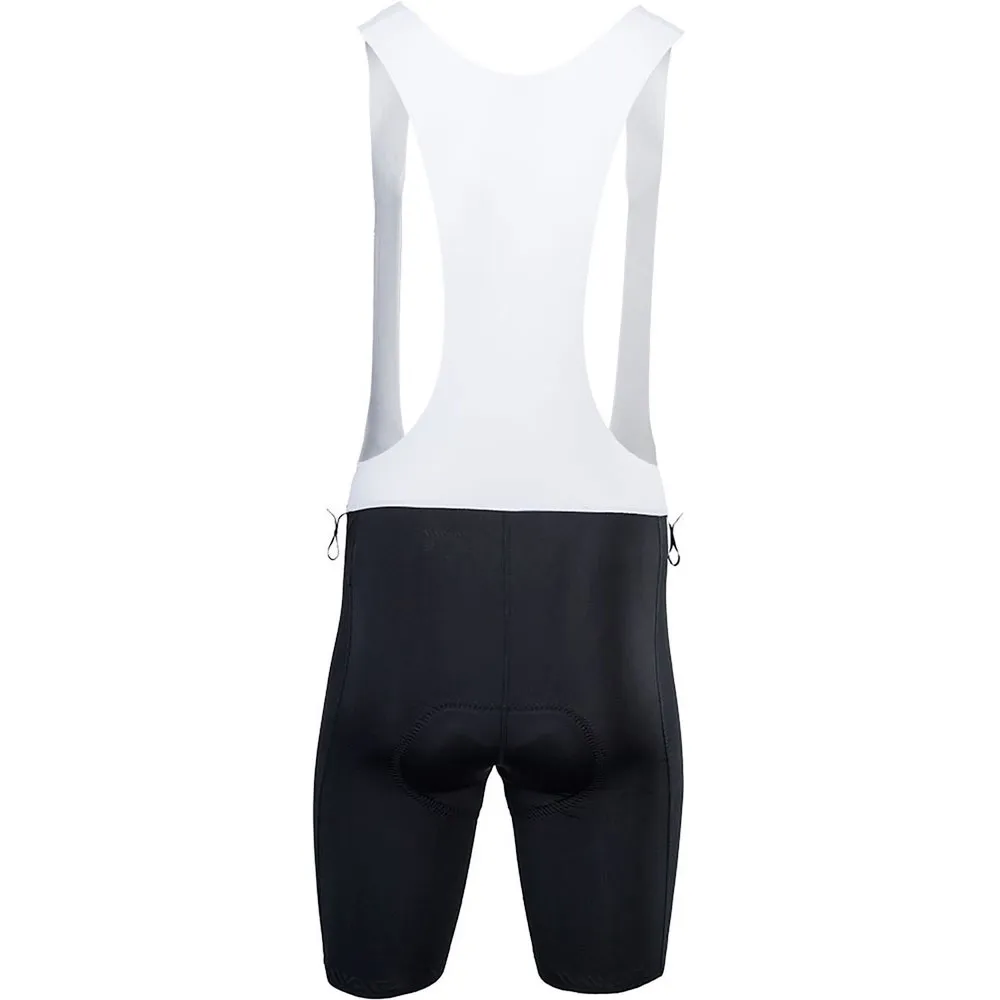 The braces are deliberately brought up to the neck, so that they do not slide off the shoulders during vigorous movements on the bike.