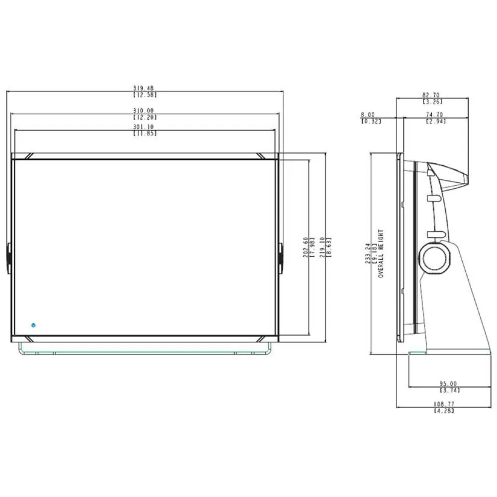 - Dimensions W x H x D: 310 mm x 219 mm x 82.7 mm (12.20´´ x 8.63´´ x 3.26´´) (no bracket)