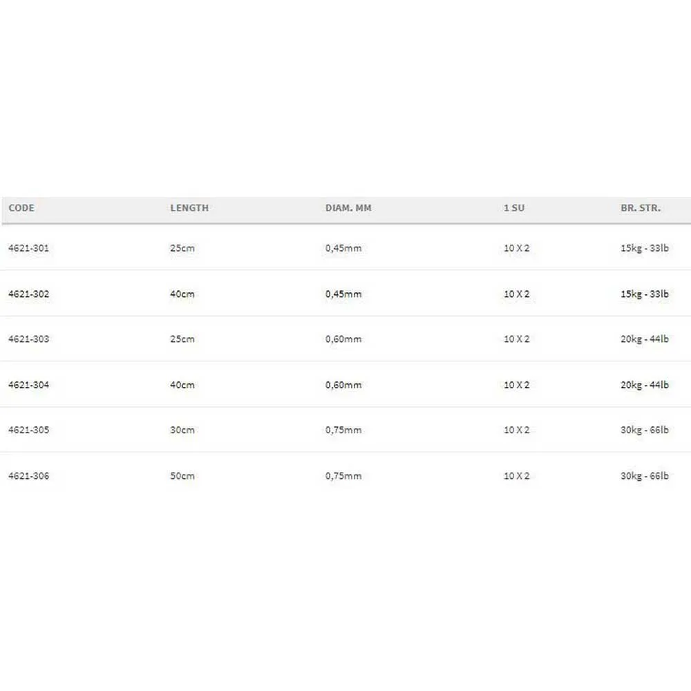 The 50 cm length of the SPRO Leader provides optimal versatility for a wide range of fishing techniques and target species. Whether you´re casting, trolling, or jigging, this leader offers the perfect balance of length and control. It allows for natural bait presentation while maintaining the strength and durability needed to handle powerful fish. Experience the difference a properly designed leader makes with the SPRO Leader 50 cm.