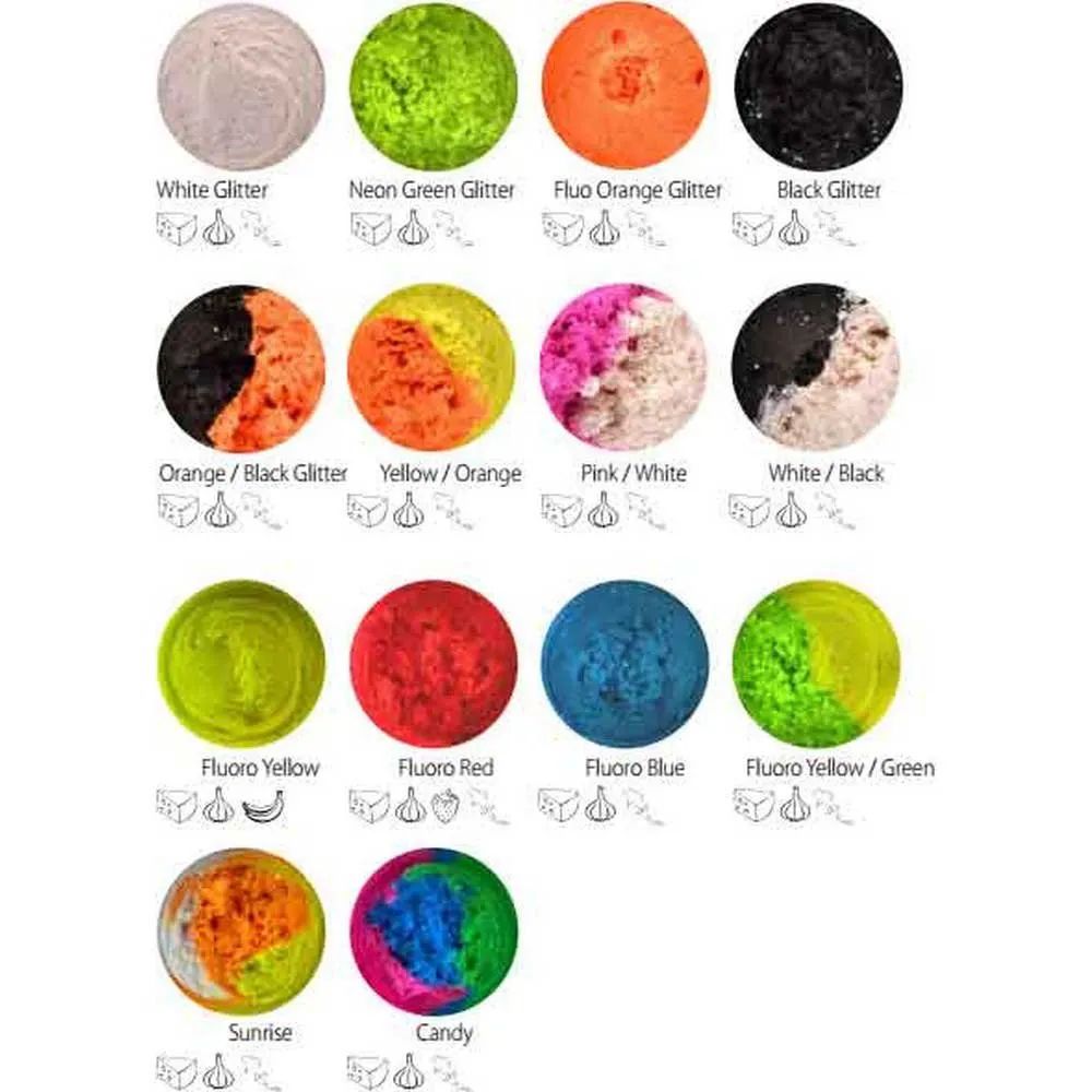 The full Pro Paste colour range is available with a very strong garlic scent or a cheese scent.